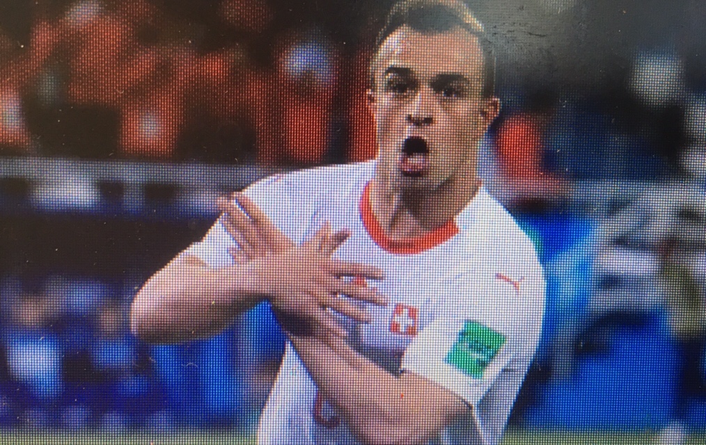 Sveits sin stjernespiller Shaqiri feiret med å vise tegnet for den albanske ørnen etter scoringen sin mot Serbia. Ikke rart at Serberne ble provosert for denne takk-for-sist gesten fra kosovokrigen. Mer interessant er det hvor provoserte enkelte sveitse ble av at deres beste mann viste for verden at han identifiserer seg både med Kosovo og Sveits: Skoparet til Shaqiri er prydet både med Sveits og Kosovo sitt flagg. Hvorfor er det kontroversielt at han viser at han har kosovoalbanske røtter?