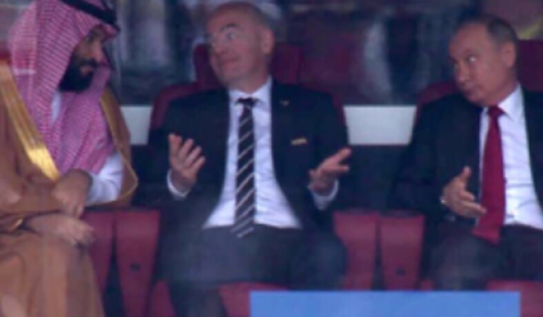 Jeg tenker at FIFA og fotball-VM også kan være et bilde på mye av det som er galt i verden: Putin på VIP tribunen med sine unnskyldende gester til sin Saudiarabiske gjest. Tidligere president i FIFA Sepp Blatter som blir dusjet i dollarsedler av en aktivist mot korrupsjon.